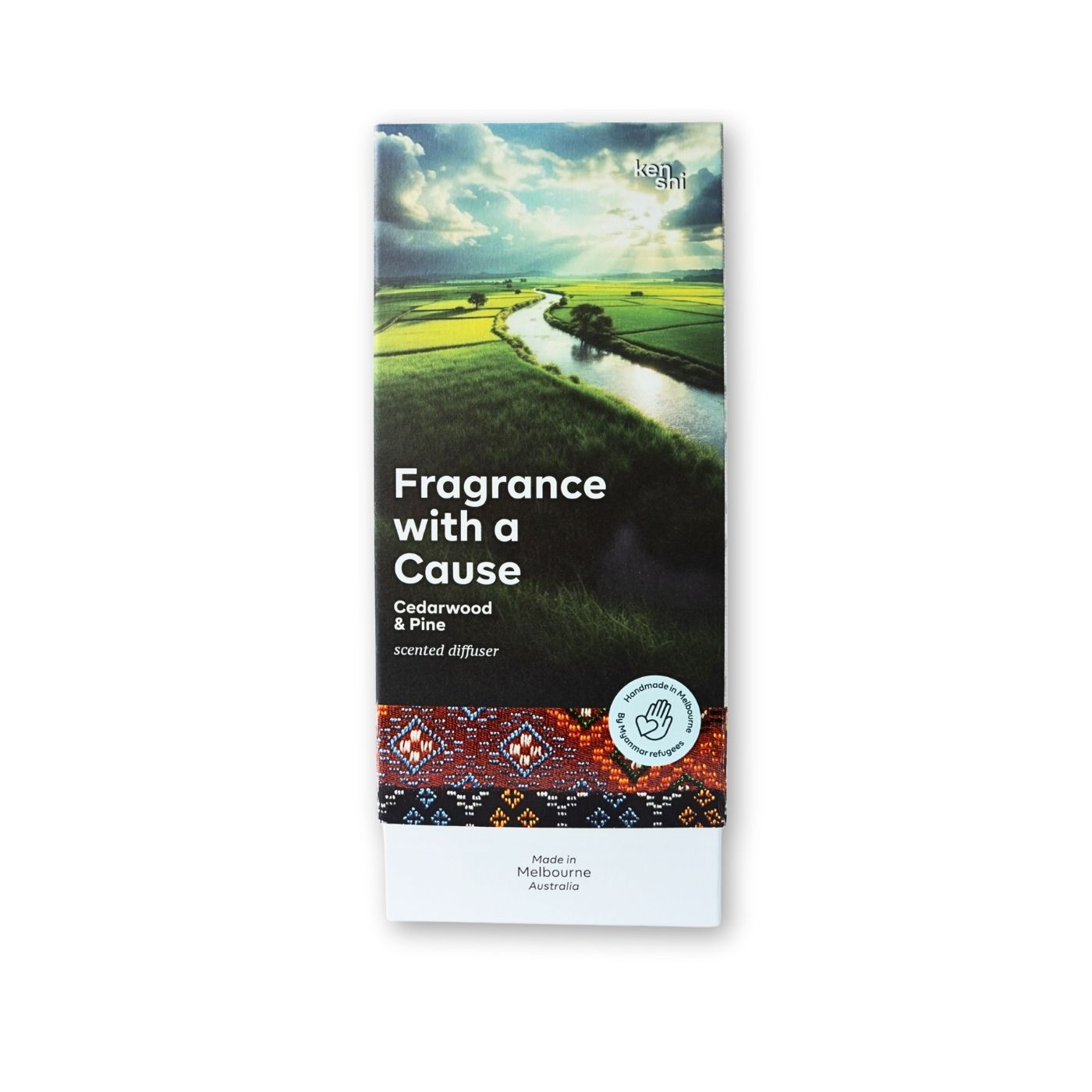 Part of the Kenshi Signature Range, this large diffuser is hand-crafted in Melbourne by refugee artisans. The high-quality packaging features traditional handwoven fabric patterns from Chin State, Myanmar, and imagery that reflects the region’s beauty. Infused with a high concentration of fragrance oils, it provides long-lasting scent for a minimum of four months.
